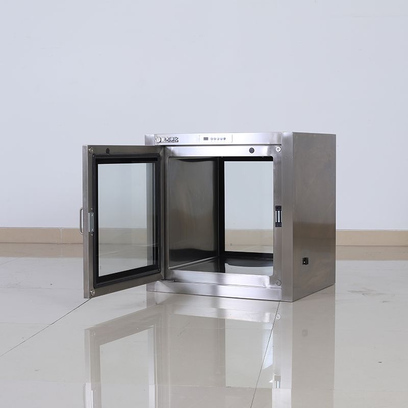3. Maak het transfervenster schoon: Open een van de deuren, plaats de goederen in het transfervenster, sluit beide deuren en zet de ventilatorschakelaar aan. Nadat u het geluid van de ventilator heeft gehoord, duurt het ongeveer 5-30 minuten om de binnenlucht te zuiveren.