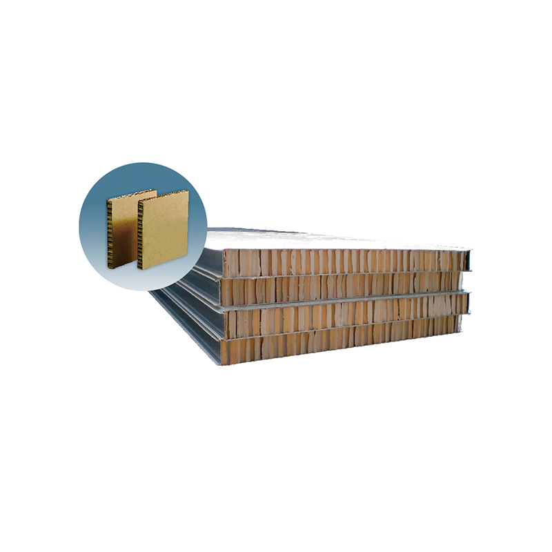 Papieren honingraat sandwichkleurige stalen plaat is een ultralicht bouwpaneel gemaakt van kleurcoating als paneel, papieren honingraat als kernmateriaal en door warmte uithardende lijm verwarmd en geperst in een continuvormmachine. Het product heeft een laag gewicht, goede thermische isolatie en scheidingswanden, een goed geluidsisolerend effect en een hoge bouwsnelheid.